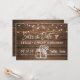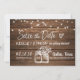 Cette conception présente un fond en bois rustique avec des lumières de chaîne suspendues et des pots Mason vintage et des fleurs. Personnalisez ceci pour n'importe quelle occasion, mais idéal pour une annonce de mariage pour un mariage champêtre à venir !