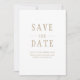 Sauvegardez l'Invitation d'or Date White. Design de typographie moderne et élégant. Texte de couleur or antique sur blanc avec le dos avec un support original mélangé d'or antique d'art abstrait moderne imprimé d'art. Personnalisez avec votre propre texte. Une belle mise à part le design date excellent pour les mariages, fiançailles, anniversaires et autres occasions spéciales.