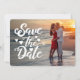 Carte postale faire-part de votre date de mariage. Utilisez votre image horizontale complète avec "Enregistrer la date" superposée sur la photo. Un dégradé foncé en option permet au script blanc de se démarquer si votre arrière - plan est trop léger. Supprimez simplement le dégradé si vous n'en avez pas besoin. La couleur arrière est personnalisable.