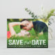 Carte postale faire-part de votre date de mariage. Utilisez votre image horizontale complète avec "Save our Date" sur votre photo. Un dégradé noir apparaît le long du bas de la carte pour faire ressortir le type. Si vous n'avez pas besoin du dégradé, il suffit de l'éliminer. Customisez vos noms et votre date à l'avant et à l'arrière. Il existe une autre carte avec un dégradé blanc de type foncé disponible.