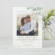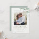 Carte de faire-part de mariage élégante à l'aquarelle avec feuilles d'eucalyptus, recto-verso. Avec feuillage d'eucalyptus peint à l'aquarelle. Ce modèle de conception présente une mise en page avec une photo.