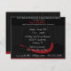 Chapeau Fedora avec ruban de chapeau rouge sur fond rayé gris, invitation personnalisable pour enterrement de vie de garçon. Choisissez 'personnaliser' et ajoutez les informations de votre soirée dans les champs de texte prévus. Conservez ou choisissez une police, une taille et une couleur différentes. Utilisez le verso pour plus d'informations si nécessaire.