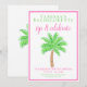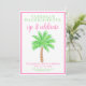 Ces invitations de fête d'enterrement de vie de jeune fille à thème palmier prépa sont parfaites pour une fête de destination tropicale. Elles présentent la phrase "Boire et célébrer" sur le devant. Des housses de refroidissement assorties sont disponibles pour une touche amusante et festive à votre fête d'enterrement de vie de jeune fille.