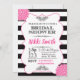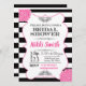 De jolies lignes roses chaudes et noires et blanches rayées ajoutent du piquant à cette invitation à l'enterrement de vie de jeune fille. Des rayures horizontales assorties sur le verso de l'invitation. Le texte au verso est entièrement personnalisable.