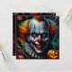 Invitations à la fête d'Halloween avec art aérien représentant un clown effrayant entouré de jack-o-lanterns.