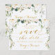 Carte de notification de mariage rustique aux pivoines blanches et à la verdure argentée.