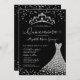 Glam moderne Black Silver Diamond Tiara Princess Gown Robe Parties scintillant Étincelle 15e anniversaire Quinceanera Invitation