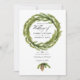 Cartes d'invitation mariage tendance avec cônes de pin aquarelle verte et blanche. Le code QR au verso dirige vers votre site de mariage où les gens peuvent en savoir plus et répondre.