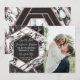 Moderne, élégante et chic carte de mariage 'Save-the-Date' en forme d'hexagone avec motif de marbre noir et blanc et finition en or rose. Ce design classique et sophistiqué est parfait pour les jeunes mariés branchés et élégants. Personnalisez avec votre propre message au recto ainsi qu'un monogramme personnalisé au verso. Conception d'impression photo personnalisable.