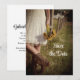 Annoncez votre prochaine cérémonie de mariage à la ferme rurale avec la mariée décontractée mais classe, les bottes de cowboy et le mariage de la ferme de tournesols Enregistrer la date Annonces. Cette charmante maison rustique tenue de la date dispose d'une photo pittoresque pittoresque de ferme d'une mariée en dentelle blanche habillée d'une robe mariage en cuir marron bottes de cowboy occidental portant un bouquet de fleurs de tournesol jaunes avec une clôture de barbelé en bois et grange en silo dans l'arrière - plan. Idéal pour une cérémonie et une réception informelle à la grange.