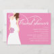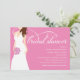 Cette invitation à la douche nuptiale présente une belle mariée tenant un bouquet de fleurs debout à côté du mot "douche nuptiale" écrit dans un script blanc élégant. Choisissez votre propre couleur arrière - plan pour plus de personnalisation à l'aide de l'outil customisant. Graphiques ©Blackleaf Design.