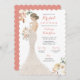 Une invitation à la douche nuptiale glamour présente une mariée dans une robe mariage brillante en dentelle et ornée de fleurs d'aquarelle aux couleurs de l'automne. Plusieurs options sont disponibles pour les cheveux de la mariée et le teint de la peau.