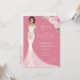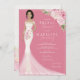 De belles invitations à la douche nuptiale présentent une mariée illustrée pour être dans une robe mariage de sirène en dentelle et entourée de roses et de pivoines roses et blanches dessinées à la main. Choisissez la coiffure, la couleur des cheveux et le ton de la peau pour ressembler le plus à la mariée à être. Le dos de l'invitation présente la fausse dentelle et rose rose.