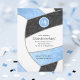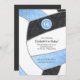 Cette invitation à la fête d'anniversaire sur le thème du volleyball présente l'image réaliste d'un volleyball abstraite surdimensionné et stylisé qui a des panneaux bleu clair, noir et blanc - un motif kaléidoscopique floral artsy est mélangé avec les panneaux bleu et noir du volleyball - personnalisez avec ses détails de fête - par katz_d_zynes