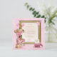 Bébé vintage dans le tutu rose avec un collier orné de bijoux de couronne et de perle d'or. Elle s'assied sur un trône de velours de rose et d'or avec une bannière qui lit le "ęr anniversaire" dans des parties scintillantes de rose de faux avec un bouquet des ballons attachés à la chaise. À ses pieds est un or et un cadeau rose de ruban. Le cadre d'or est embelli avec un rose rose de ruban et de rose. N'oubliez pas d'ajouter un message sur le rouleau dans la boîte !