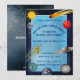 Cette invitation de fête d'anniversaire modifiable présente des planètes, des étoiles filantes et des météores sur un fond étoilé. Au centre se trouvent les détails de l'événement. Ceci, ainsi que le champ d'informations supplémentaires au dos, est modifiable, alors n'hésitez pas à modifier les informations ainsi que la taille, le style et la couleur de la police. Cette invitation modifiable peut être utilisée pour les anniversaires, les réunions, les réunions de famille, etc.