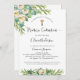Elégante invitation à la première communion en espagnol, avec d'exquis détails floraux d'aquarelle et des éléments modernes de calligraphie manuscrite à l'avant et à l'arrière. Une invitation neutre pour les hommes, idéale pour la confirmation des filles et des garçons. Retournez avec un coin cadre moderne style logo avec la date et le nom de la première communion de votre enfant. Feuillage et fleurs verdoyantes dans un beau mélange de tons vert, blanc, jaune, gris et or. Style élégant, moderne et frais. Ce même design est également disponible en anglais.