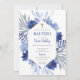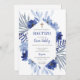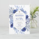 Invitation espagnole de baptême florale bleue pour garçon. Invitación de flores azules para bautizo de niño.