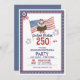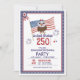 Célébrez le Semiquinentenaire de l'Amérique (250ème anniversaire) avec style avec cette invitation patriotique ! Parfait pour votre 4 juillet 2026, avec un adorable aigle avec le drapeau américain, des feux d'artifice vibrants et des bordures classiques rouge, blanc et bleu. Customisez avec les détails de votre fête pour un événement inoubliable ! Musique live, feux d'artifice et liberté vous attendent. Rejoignez-nous pour honorer 250 ans de liberté et d'indépendance.