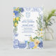 Célébrez votre mariage dans un style ensoleillé avec ce Faire-part de mariage de citron méditerranéen d'été, avec des carreaux italiens bleu et blanc classiques, des citrons d'aquarelle jaune vif et d'élégants détails calligraphiques. Inspirée par le charme de la côte amalfitaine et de la campagne toscane, cette invitation donne le ton parfait pour un mariage de destination, une célébration de jardin d'été ou un événement sur le thème des agrumes. Le design présente des motifs méditerranéens peints à la main avec une touche fraîche et moderne, idéal pour les couples à la recherche d'une suite de papeterie romantique et rafraîchissante. Entièrement personnalisable avec vos noms, les détails du mariage et l'emplacement, cette invitation s'associe magnifiquement avec les cartes RSVP correspondantes, les inserts de détails et les bandes du ventre pour un ensemble complet.