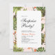 Célébrez votre jour spécial avec cette invitation de fête tropicale qui présente une typographie simple et élégante ainsi que des motifs tropicaux. Ce modèle de conception est entièrement personnalisable.