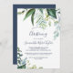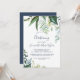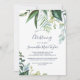 Cette invitation à la verdure estivale est parfaite pour un élégant baptême de bébé du milieu de l'été. Le design botanique présente un agencement luxuriant d'eucalyptus couleur aquarelle peint, de verdure et de feuilles verts.