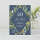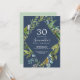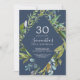 Cette invitation de 30e anniversaire en diamant marine verdoyante été est parfaite pour une soirée de mi-été élégante. Le design botanique présente un agencement luxuriant d'eucalyptus à l'aquarelle peinte, de verdure et de feuilles verts avec de subtiles touches de fleurs roses rousses sur un arrière - plan bleu marine.