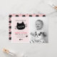 Cette mignonne invitation photo d'anniversaire "Are you kitten me right meow" présente un visage de chat noir, un os de poisson, et pow sur un arrière - plan rose clair encadré par une bordure blanche. Le revers est composé d'un arrière - plan rose avec des motifs de chat et d'os de poisson noirs. Personnalisez pour vos besoins.Vous pouvez trouver plus de produits correspondants dans mon magasin.