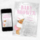 Invitation de baby shower de fille hivernale merveilleuse avec adorable petite fille ethnique portant une tenue d'hiver rose mignonne sur un bel arrière - plan de flocon de neige merveilleland hivernal. Cette jolie invitation au baby shower hivernal des merveilles est facilement customisée pour votre événement en ajoutant simplement les détails de votre événement.
