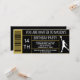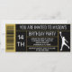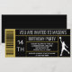 Invitation d'anniversaire de basket avec joueur de basket sur fond d'étiquette de boîte de chaussure noire et dorée. Ajoutez simplement les détails de votre événement.