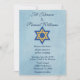 Une élégante invitation de mariage, ce design présente un arrière - plan bleu avec l'Etoile de David en bleu et or. Au-dessus de l'étoile de David se trouve le nom du couple, ci-dessous se trouve l'information de cérémonie. Commandez dès aujourd'hui !