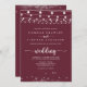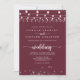 Cette cordes bordeaux étoiles avant et arrière faire-part de mariage est parfaite pour un mariage rustique. Le design présente de belles lampes à cordes peintes à la main avec de splendides étoiles dans un arrière - plan bordeaux. Enregistrez du papier en incluant plus de détails au verso de l'invitation plutôt que sur une carte de boîtier séparée.