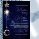 Lune d'or dans le ciel, brille au-dessus des mots sur un arrière - plan bleu. Un thème moderne pour une soirée céleste et élégante invitation de mariage personnalisée. Modifiez facilement les informations pour votre propre conception personnalisée. Changez facilement les informations pour votre propre mariage personnalisé stationnaire. D'une gamme de Mariages personnalisés assortis stationnaires de Chessie's Fine Designs.