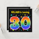 Ce design amusant, dynamique et excitant d'invitation à la fête d'anniversaire comprend un motif coloré inspiré des étoiles, ainsi que le numéro "30" avec un spectre multicolore inspiré arc-en-ciel ou motif dégradé. Le nom sur le devant peut être customisé. Le verso présente des informations personnalisées sur la fête. Des invitations à des fêtes d’anniversaire comme celle-ci peuvent être envoyées à des invités invitations à une fête d’anniversaire organisée pour célébrer le trentième anniversaire de quelqu’un. [~Z0000349]