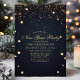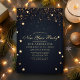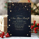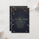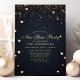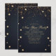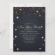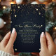 Cette invitation élégante pour la soirée du Nouvel An présente des étoiles de confettis dorés sur fond bleu nuit. Personnalisez ce design sur mesure avec vos propres détails de fête.