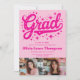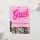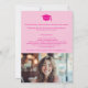 Célébrez votre diplômé avec cette audacieuse invitation à la fête de remise de diplômes inspirée par la rétro ! Doté d'un arrière - plan rose vif, d'un script "Grad" aux étoiles scintillantes et de trois emplacements photo personnels, ce design capture une ambiance amusante et énergique. L'arrière poursuit l'esthétique vintage avec des tons roses assortis, un graphique de casquette de graduation et de l'espace pour plus de détails. Parfait pour les diplômés qui aiment un look nostalgique mais tendance!