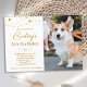 Fête de chiots ! Organisez l'anniversaire de votre chiot ou chien avec cette élégante carte d'invitation personnalisée avec une photo de votre animal de compagnie en or et des étoiles scintillantes.