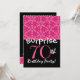 Cette conception rose et noire de remous est un amusement pourtant manière élégante d'inviter des gens à une soixante-dixième célébration de fête d'anniversaire de SURPRISE. Tout le texte est totalement personnalisable. Vous pouvez expérimenter avec différents types de papier en cliquant sur sur l'étiquette "d'options d'invitation" sur le coin droit supérieur. Cette conception est actuellement décrite sur un papier de base, mais beau sur un papier métallique hued de glace qui donne à votre invitation d'anniversaire un miroitement et un éclat de fête.