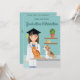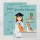 Célébrez la réussite d'un étudiant en médecine vétérinaire lors de sa remise de diplôme grâce à ce design personnalisable orné de l'illustration originale et adorable de Destei représentant une femme vétérinaire dans une salle d'examen d'une clinique vétérinaire. La vétérinaire porte une toque de remise de diplôme noire avec un gland jaune, une blouse de laboratoire blanche, un bleu de travail et un stéthoscope autour du cou. La vétérinaire a des cheveux bruns et un visage souriant.