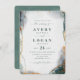 Aquarelle Ethérée Abstraite moderne Eucalyptus Green Wedding Invitations. Cette invitation de mariage moderne est magnifiquement peinte à la main avec des couleurs riches qui sont parfaites pour l'été ou l'automne. Montré dans la palette de couleurs Mariage Eucalyptus colorway of : Eucalyptus Green, Pine Dark Green, 24k Gold, Enchanted Dark Navy Blue et Misty Mint Green. Avec des détails de feuille de parties scintillant métal d'or, et une police de script de signature magnifique avec des queues, la collection de mariage d'aquarelle éthérée est sûr de rendre votre mariage mémorable et beau! Pour en savoir plus, recherchez les collections mariages 2021 de Chic Paperie pour des designs plus tendance et palettes de couleurs mariages pour cette année.