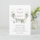 Faire-part de mariage botanique tout-en-un élégant avec aquarelles vert sauge, vert eucalyptus verdure, feuilles de laurier et or accents, avec typographie moderne gris et vos noms dans un script d'or élégant. Au contraire, téléchargez votre photo de fiançailles préférée et entrez l'adresse de votre site Web mariage pour créer un code QR que vos invités peuvent scanner en ligne vers RSVP et obtenir des détails mariages supplémentaires tels que des hébergements.