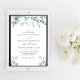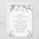 Faire-part de mariage tout-en-un élégant avec aquarelles vert sauge vert eucalyptus vert vert, script élégant et la typographie gris doux. À l'arrière, entrez l'adresse de votre site Web mariage pour créer un code QR que vos invités peuvent scanner en ligne vers RSVP et obtenir d'autres détails mariages tels que les hébergements et les itinéraires.