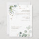 Faire-part de mariage de feuillage blanc Eucalyptus Botanique. Parents mariés répertoriés comme hébergeant le mariage. Texte en or.