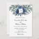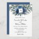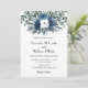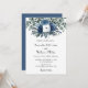 Elégant botanique, bleu Dusty, bleu marine, aquarelle, eucalyptus, invitation de mariage verdoyante. Veuillez le personnaliser avec vos détails.