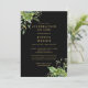 Cette élégante invitation à la vie et à la mémoire en noir et or botanique à l'eucalyptus vert peut être personnalisée avec votre information dans la typographie classique. Conçu par Thisisnotme©