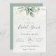 Belle invitation de douche nuptiale avec l'aquarelle eucalyptus et feuilles d'or avec calligraphie manuscrite moderne.