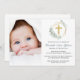 Invitation Eucalyptus Gold Cross Script Photo Baptême