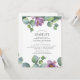 Une classe moderne et élégante de 2022 l'invitation de la fête de graduation avec l'eucalyptus botanique vert succulent dans l'aquarelle verte et violette. Ce design branché est parfait pour annoncer votre grande fête et inviter vos invités. Le design a une typographie moderne sur un arrière - plan blanc avec facile à modifier le texte