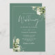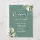Cet élégant faire-part de mariage vert feuille d'eucalyptus peut être personnalisé avec vos informations en typographie chic avec vos initiales monogrammes au verso. Conçu par Thisisnotme©