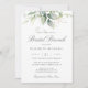 Belle invitation de brunch nuptiale avec des eucalyptus aquarelles et des feuilles d'or.